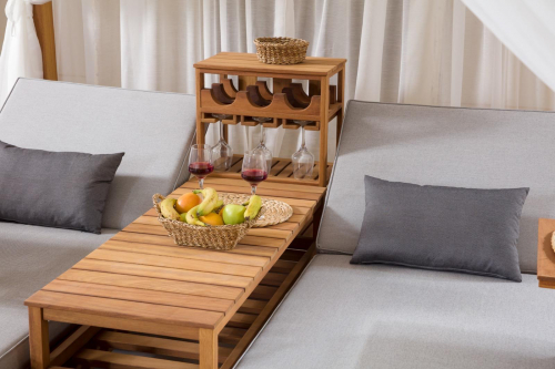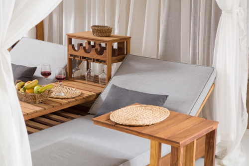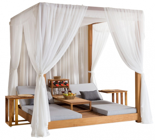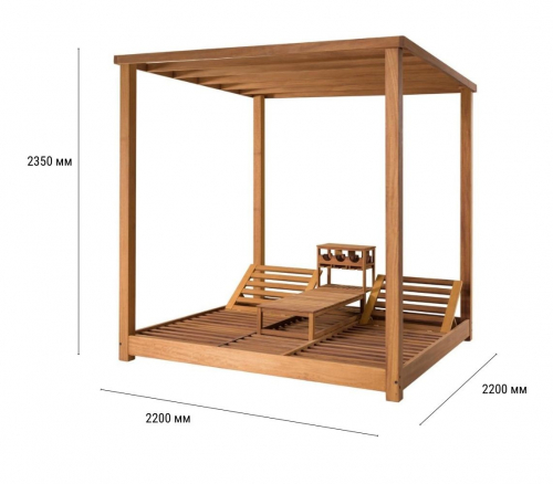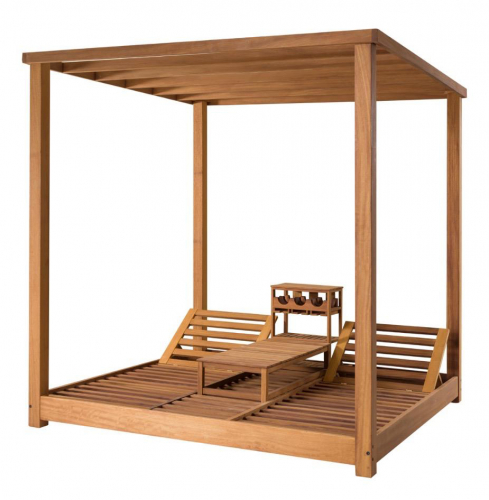 Просторный бунгало-шатер с лежаками Storm имеет современный дизайн и прекрасно дополнит зону отдыха. Основная конструкция шатра изготовлена из дерева ироко.