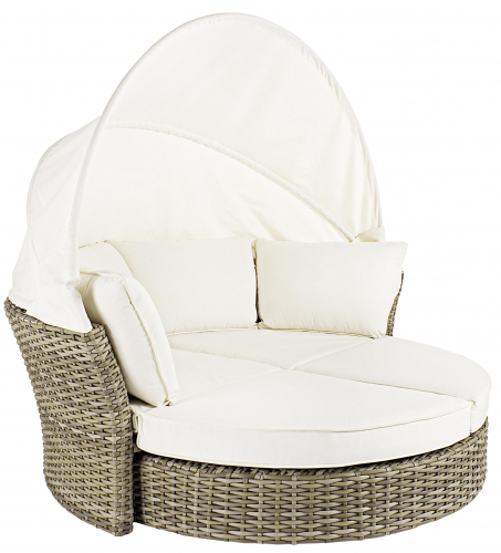 Представленная кушетка с откидным козырьком и выдвижной вращающейся подставкой для ног поможет Вам с максимальным комфортом отдохнуть от суеты на лоне природы. Кушетка оформлена в современном стиле.