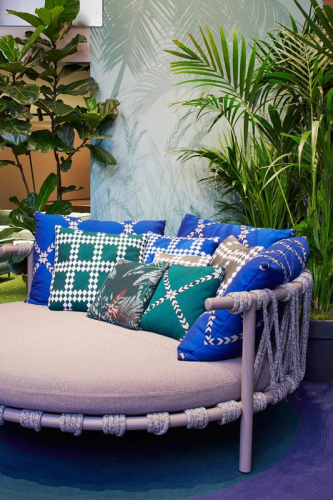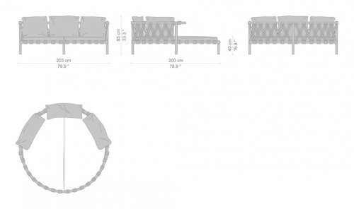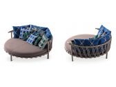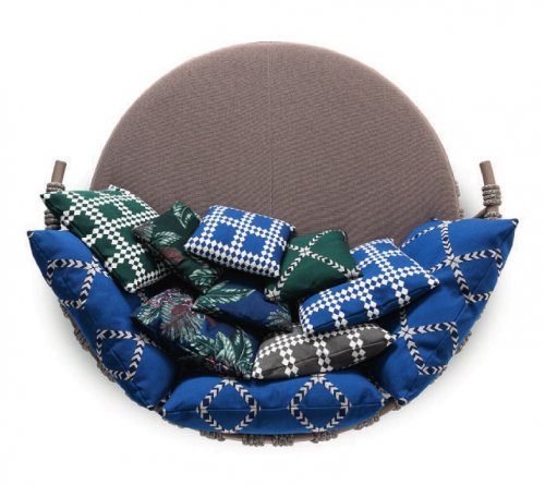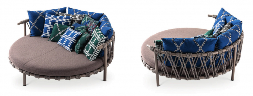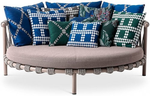 Вдохновением коллекции послужили маленькие батуты, которые часто встречаются в садах домов в Гренландии. Trampoline - это яркий и элегантный диван для влюбленных, идеально подходящий для создания уютных открытых пространств, островков расслабления и комфорта благодаря разнообразию мягких подушек для спинки. Диван доступен в двух версиях: низкий диван и диван с навесом для защиты от солнца.