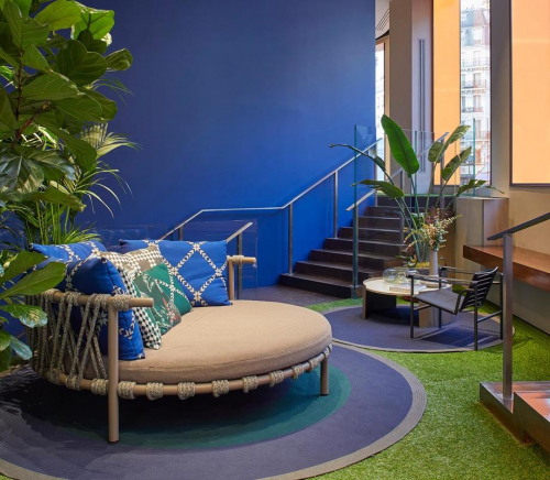 Patricia Urquiola воплотила свое виденье счастья жизни на открытом воздухе в коллекцию мебели Trampoline, полную игривых дизайнов, округлых и извилистых форм. Коллекция выделяется своим экологически чистым подходом с использованием инновационных, экологически чистых материалов, полностью сделанных в Италии, благодаря исследованиям Cassina LAB, сотрудничеству Центра исследований и разработок Cassina и Poli.design Политехнического университета Милана.