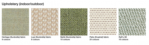 - Съемная обивка может быть выполнена из тканей категорий B (Heritage, Natte), C (Lopi, Patio), E (RePo 3D).