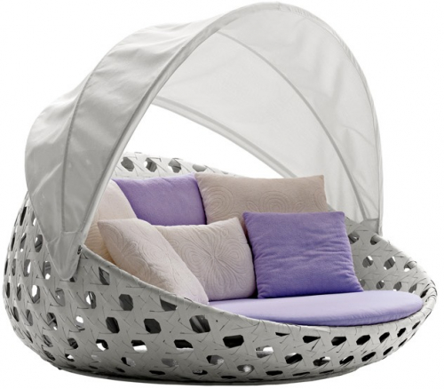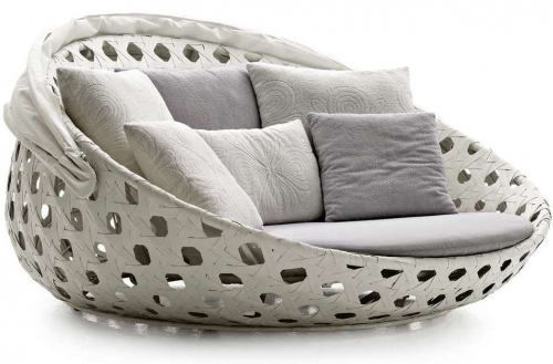 Patricia Urquiola объясняет: «Для меня Canasta - это образ узора. Он не хочет подражать природе. Я разработала обволакивающие формы, которые дают представление о защите. И я изучила новые формы эргономики, чтобы удовлетворить каждый момент дня, проведенного на открытом воздухе».
