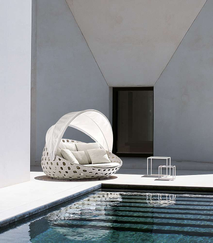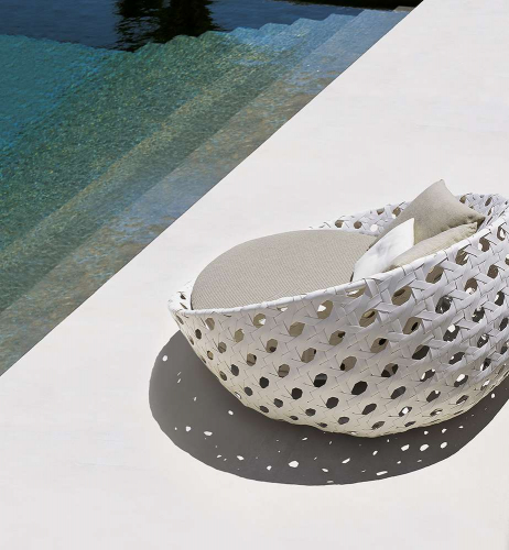 Семейство сидений с макси-переплетением ленты из полиэтиленового волокна белого цвета. Все эти очень удобные сиденья имеют рамы из алюминия с атмосферостойкой полиэстерной порошковой краской. Благодаря использованию высококачественных стойких материалов, диван Canasta идеально подходит для использования на открытом воздухе в любом климате, поскольку он устойчив к температурам и УФ-излучению.