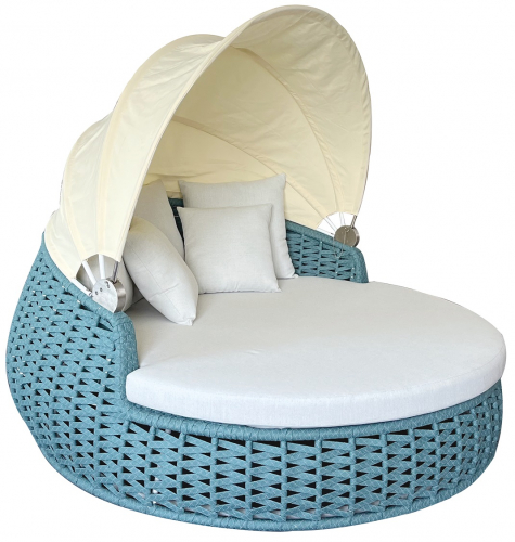 Круглый лаунж-диван с навесом Casa - идеальное сочетание комфорта, стиля и функциональности. С элегантным каркасом из алюминия с порошковым покрытием этот диван прекрасно сочетается с современным экстерьером и сохранит свой вид на протяжении многих лет. Диван поможет наслаждиться отдыхом на свежем воздухе в любое время года благодаря регулируемому навесу, который защищает от солнца и нежелательных погодных условий. Плетение из полиэстерного шнура не только придает дивану изысканный вид, но и обеспечивает надежность и долговечность.