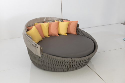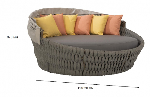 Лаунж-диван с плетением из роупа Relax идеально украсит зону отдыха на летней веранде или в саду. Модель подойдет для использованиям в аквазонах отелей и spa-центров, на открытых площадках возле бассейнов.
