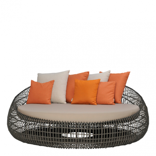 Превосходная эстетика коллекции Vino обусловлена прекрасным обрамлением и инновационными технологиями. Широко открытый узор плетения не позволяет этой просторной раме чувствовать себя тяжелой, она настолько же прочна, насколько и красива. Изделия коллекции изготовлені из алюминия и волокна JANUS, сотканного вручную. Эффектные изделия Vino Lava или Nimbus созданы для изысканных пространств как внутри, так и снаружи.