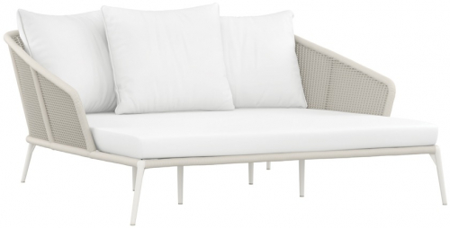 Knot - это коллекция для обеденной и гостиной зоны, которая отличается красивыми плетеными элементами ручной работы, поддерживаемыми легкой алюминиевой рамой. Используя технику макраме модифицированного рифового узла, этот ансамбль необычного дизайна настолько же прочен, насколько и превосходен.