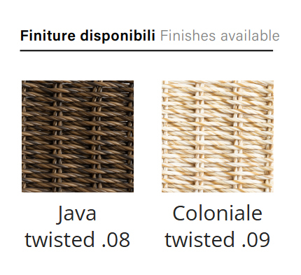Коллекция, вдохновленная Африкой и красками песчаных земель. Twiga - это динамичная и универсальная коллекция, благодаря нейтральным природным оттенкам искусственного ротанга прекрасно сочетается с любой мебелью на открытых пространствах. Вся алюминиевая мебель Atmosphera имеет порошковое покрытие, котороые обеспечивает устойчивость поверхности к ударам и царапинам. Искусственный ротанг, искусно обработанный вручную, выполнен из экструдированного полиэтилена высокой плотности. Материалы, используемые для отделки, напоминают самые ценные натуральные волокна (ротанг, плетение, бамбук) и предлагают высокий стандарт качества. Они долговечны и устойчивы к любым атмосферным воздействиям, таким как дождь, соленая вода, а их цвет защищен от ультрафиолета.