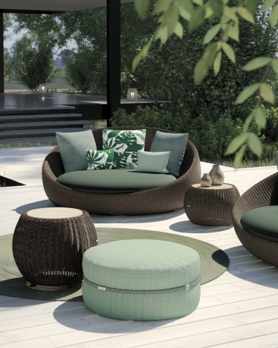 Коллекция, вдохновленная Африкой и красками песчаных земель. Twiga - это динамичная и универсальная коллекция, благодаря нейтральным природным оттенкам искусственного ротанга прекрасно сочетается с любой мебелью на открытых пространствах. Вся алюминиевая мебель Atmosphera имеет порошковое покрытие, котороые обеспечивает устойчивость поверхности к ударам и царапинам. Искусственный ротанг, искусно обработанный вручную, выполнен из экструдированного полиэтилена высокой плотности. Материалы, используемые для отделки, напоминают самые ценные натуральные волокна (ротанг, плетение, бамбук) и предлагают высокий стандарт качества. Они долговечны и устойчивы к любым атмосферным воздействиям, таким как дождь, соленая вода, а их цвет защищен от ультрафиолета.