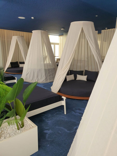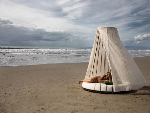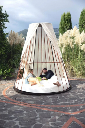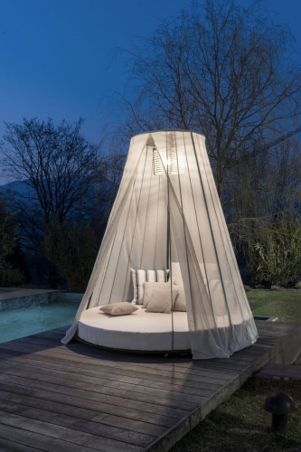На берегу моря, в спа-салоне или в любом другом месте, как на открытом воздухе, так и в помещении, Planet окутывает тело и разум ощущением огромного удовольствия. Его основание выполнено из ценных пород дерева, с матрасом из материала Tecnorev, покрытого УФ- и атмосферостойкой тканью. Морские канаты опоясывают лежак Planet, создавая эффект паруса, рассчитаны на длительный срок использования. Сочетание изысканного дизайна и шарма в одном изделии, которое предлагает эксклюзивный стиль и комфорт.