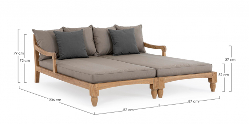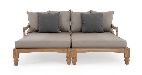 Большой лежак Bali выполнен из тика, поэтому отличается устойчивостью и долговечностью. Матрас и подушки - из солнцезащитной олефиновой ткани. Лежак состоит из двух частей - левого и правого лежака, которые также можно использовать по отдельности. Bali украсит зону отдыха в частном саду или лаунж зону возле бассейна.
