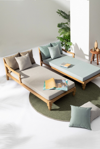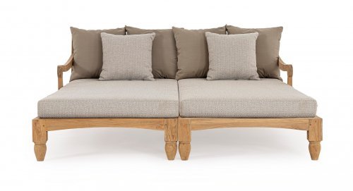 Большой лежак Bali выполнен из тика, поэтому отличается устойчивостью и долговечностью. Матрас и подушки - из солнцезащитной олефиновой ткани. Лежак состоит из двух частей - левого и правого лежака, которые также можно использовать по отдельности. Bali украсит зону отдыха в частном саду или лаунж зону возле бассейна.