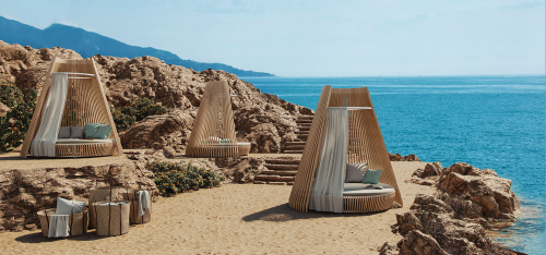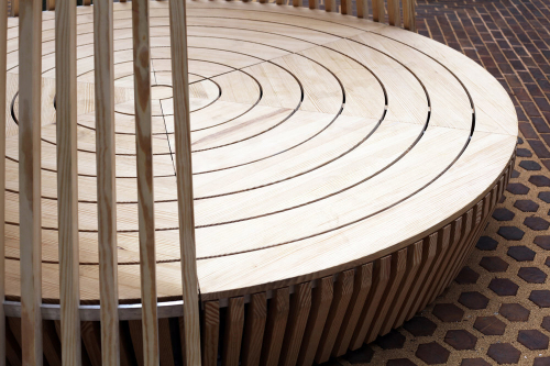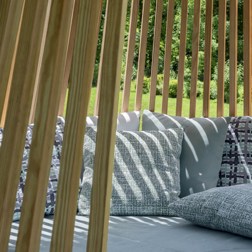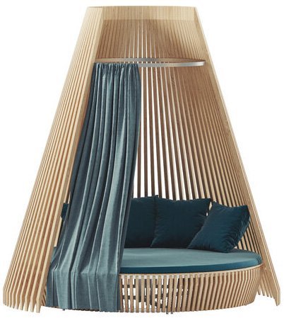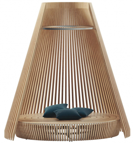 Круглый лежак Hut (рус. хижина) - это гостеприимное и удобное гнездышко, в котором можно отдохнуть в гармонии с природой. Длинные "стебли" из сибирской лиственницы воспроизводят формы вигвама, а вставки и металлические детали, определяющие большое сиденье с мягкими подушками, подчеркивают его современную сущность.
