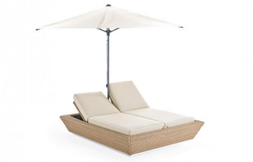 Двойной шезлонг Zoe для отдыха на пляже или в саду. Прекрасно впишется в любой интерьер и создаст красивую атмосферу.