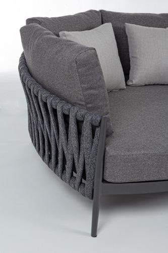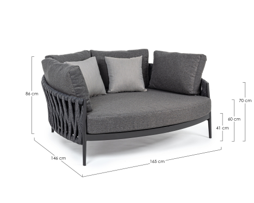 Красивый и оригинальный лаунж-лежак Rafael, характеризующийся простой и утонченной формой. Плетеная спинка и боковины придает ему модный и привлекательный внешний вид, благодаря чему он станет отличным решением для обстановки зон отдыха возле бассейнов или во дворах загородных клубов. Прочный алюминиевый каркас в сочетании с мягкими и удобными подушками делают модель максимально комфортной и надежной. Моменты расслабления на свежем воздухе станут еще ярче с лаунж-лежаком Rafael.