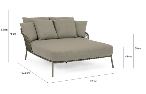 Лаунж-лежак Ivissa - это современный предмет мебели интересной формы и цвета, благодаря которому он оживит любое пространство, в котором находится. Лежак привлекает внимание и станет прекрасным дополнением гостиной зоны на открытом пространстве. Он изготовлен из стали и имеет мягкие подушки на сиденье и спинке. Подлокотники и продуманная конструкция гарантируют комфорт во время использования. Плетеный корпус придает лежаку удивительный характер. Ножки обеспечивают хорошую устойчивость.