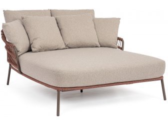 Лаунж-лежак Talaia - это современный предмет мебели интересной формы и цвета, благодаря которому он оживит любое пространство, в котором находится. Лежак привлекает внимание и станет прекрасным дополнением гостиной зоны на открытом пространстве. Он изготовлен из стали и имеет мягкие подушки на сиденье и спинке. Подлокотники и продуманная конструкция гарантируют комфорт во время использования. Плетеный корпус придает лежаку удивительный характер. Ножки обеспечивают хорошую устойчивость.