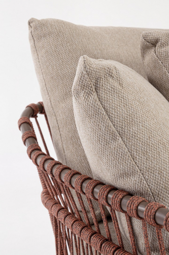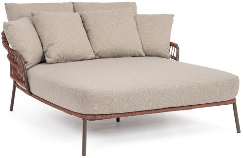 Лаунж-лежак Talaia - это современный предмет мебели интересной формы и цвета, благодаря которому он оживит любое пространство, в котором находится. Лежак привлекает внимание и станет прекрасным дополнением гостиной зоны на открытом пространстве. Он изготовлен из стали и имеет мягкие подушки на сиденье и спинке. Подлокотники и продуманная конструкция гарантируют комфорт во время использования. Плетеный корпус придает лежаку удивительный характер. Ножки обеспечивают хорошую устойчивость.