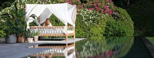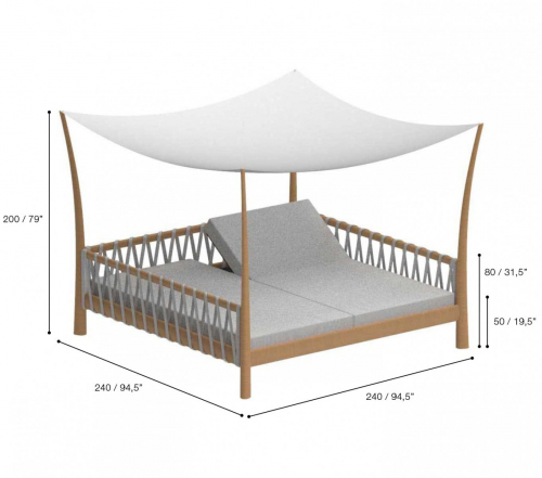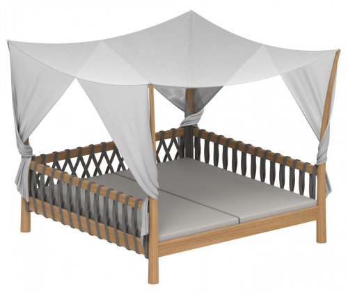 Tuskany - спроектированный предмет с четырьмя опорами представляет собой лучшую роскошную мебель. Гибрид кровати, дивана и шезлонга - это абсолютный комфорт и идеальное место для того, чтобы отдыхать у бассейна и мечтать весь день напролет… Tuskany получили свое название от четырех столбов в форме бивней, к которым прикреплен навес из батилина. Каркас из тикового дерева содержит две решетки, из которых секцию спинки можно поднять для дополнительного комфорта, просто потянув за отдельный рычаг. Лежать на толстых мягких быстросохнущих подушках - это настоящая роскошь, а шторы завершат ваш дзен-момент.
