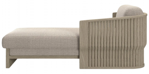 Лаунж-лежак Elythia объединяет мягкие линии и тактильную текстуру натурального тика с изящными деталями из вручную сплетеной акриловой веревки (роуп). Поверхности с имитацией камня создают визуальный контраст и ощущение естественного покоя, а мягкие линии сидений и спинок обеспечивают комфорт и уют в любой зоне отдыха: от веранды до открытой террасы.