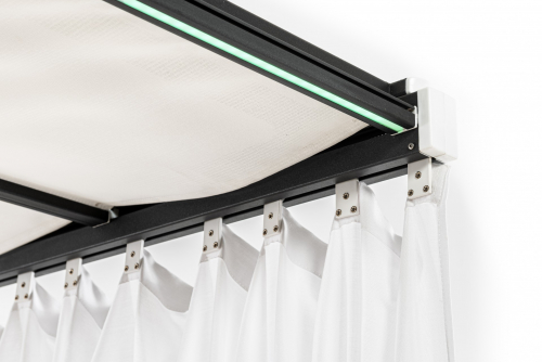 - Ткань крыши из микроперфорированного ПВХ Soltis Perform 92 (420 г/м2), действует как настоящий тепловой экран, блокируя до 97% тепла.