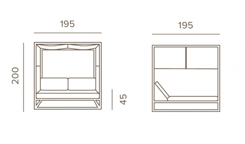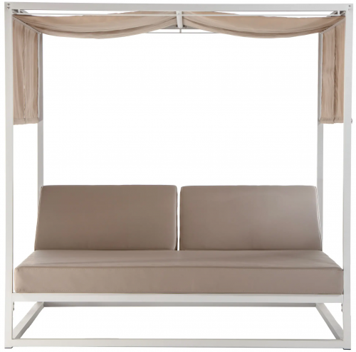 Antigua - шезлонг для двоих. Алюминиевый каркас и матрасы из водоотталкивающей экокожи обеспечивают максимальное расслабление, регулируемая спинка позволит найти самое удобное положение для отдыха, а высоту двойных штор можно менять таким образом, чтобы жаркое солнце не мешало релаксу.