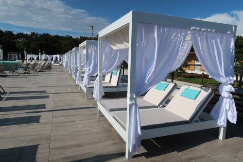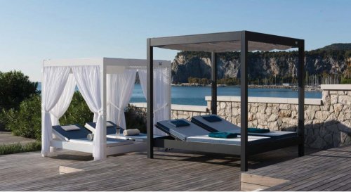 Шатер Afrodite - это фантастическая эволюция известного шатра Leucos, слияние красивого шатра и шезлонгов в прекрасный оазис элегантности и эксклюзивности. С целью создать что-то действительно уникальное Crema объединила крепкий алюминиевый каркас Leucos с новыми инновационными шезлонгами Polluce и Castore. Так родилась новая модель шатра - Afrodite.