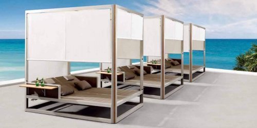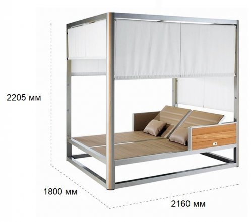 Удобный и эффектный двухместный лежак со шторами идеально подходит для отдыха у бассейна. Это настоящая «жемчужина» всей коллекции. Лежак Geneva передает сильное архитектурное ощущение современности, которое может быть очень интересно дизайнерам.