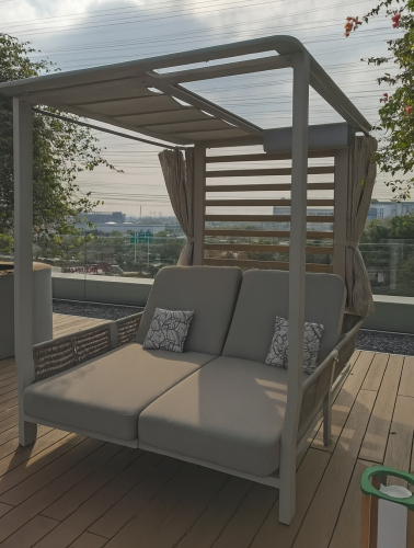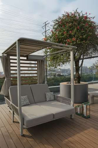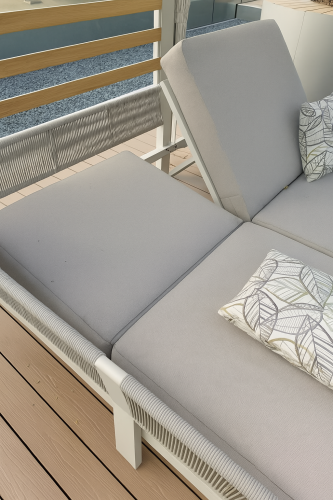 Применение специально разработанных материалов позволяет использовать лежак на открытом воздухе в полной безопасности, обеспечивая максимальную защиту от атмосферных воздействий без ущерба для эстетики и комфорта.