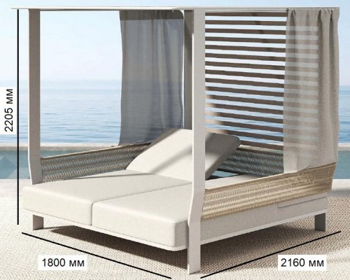 Двухместный лежак Borromeo выделяется своей простотой и способностью улучшать пространство на свежем воздухе. Алюминиевая конструкция с порошковым покрытием, обивка из олефина для двойного сиденья, которое позволяет двум людям удобно лежать рядом друг с другом, чтобы загорать вдвоем! Идеальное сочетание материалов: тепло, исходящее от роупа с одной стороны, и прочность алюминия в конструкции с другой. Лежак Borromeo - это удачное дополнение к Вашему открытому пространству! Он отлично подходит для летних дней, для полуденного отдыха в тени и прохладе, для хорошего самочувствия и веселья с близкими, ведь с нем каждая деталь посвящена удовольствию.