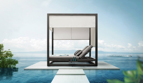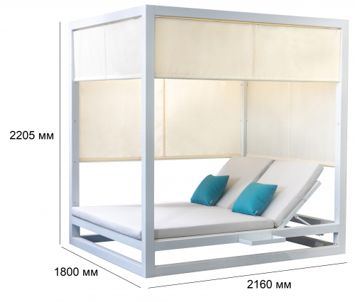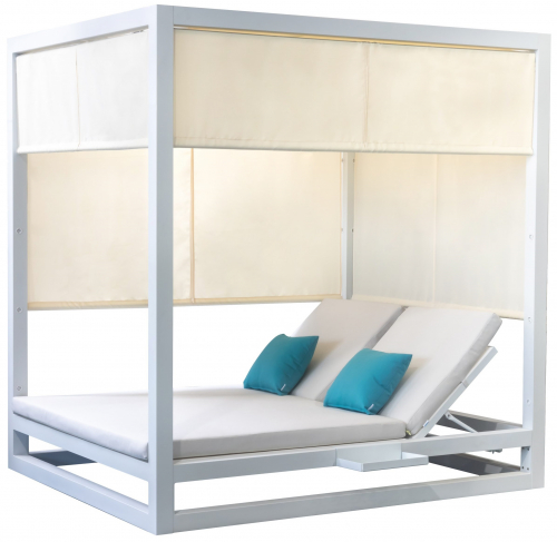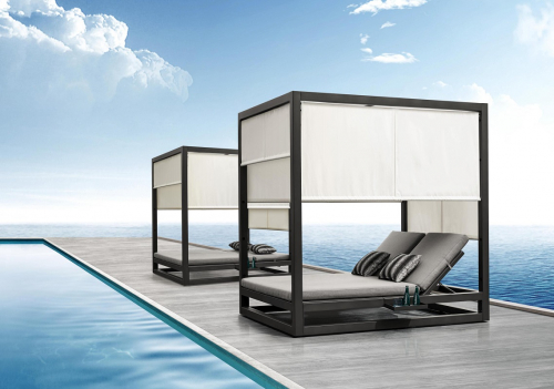 Уникальный двухместный лежак Higold Maldive - это качество и надежность в линейном дизайне. Что не остается незамеченным, так это качество используемых материалов и чувство солидности, которое выражает лежак в целом. Удобный и эффектный лежак со шторами идеально подходит для отдыха у бассейна. Он передает сильное архитектурное ощущение современности, которое может быть очень интересно дизайнерам.