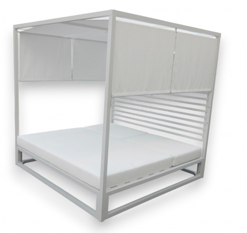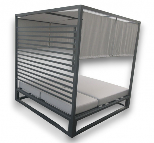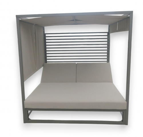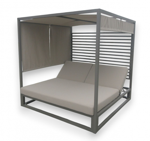 Современный и стильный шатер с лежаками Twin Sun добавит элегантность и стиль любому открытому пространству, где он используется. Идеально подходит для отдыха у бассейна, в саду, на террасе или во внутреннем дворике. Шатер имеет каркас из окрашенного алюминия, что обеспечивает крепкость и долговечность модели. А мягкие комфортные подушки лежаков дополняют изделие и гарантируют полное расслабление.
