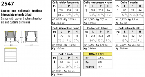 Размер упаковки 2140х2340х180 мм; 1890х2050х260 мм; 830х690х440 мм; 1790х180х180 мм; 530х530х360 мм; 1860х1820х100 мм; 2140х2340х200 мм