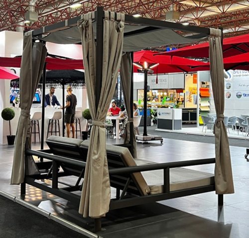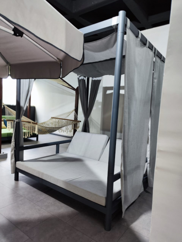 Шатер с лежаками Sultan - это элегантное и функциональное решение для садов, вилл и открытых пространств, сочетающее в себе роскошный дизайн и высокий уровень комфорта. Изготовленный из прочной алюминиевой конструкции и высококачественной ткани, он отличается продуманными деталями и долговечностью. Шатер идеально подходит как для уединенного отдыха, так и для семейного времяпрепровождения, создавая уютную атмосферу в вашем саду. Благодаря возможности выбора ткани, вы можете персонализировать его под свой стиль, добавив эстетический акцент в интерьер. Sultan не только преобразит ваше пространство, но и обеспечит комфортный отдых для вас и ваших гостей, делая каждый момент на открытом воздухе особенным.