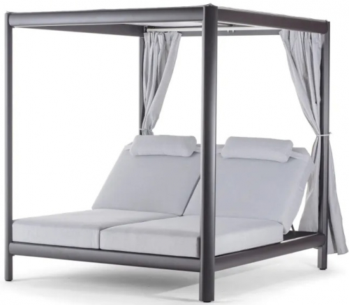 Шатер с лежаками Doha - это максимальный комфорт и современный дизайн для эксклюзивных пространств на открытом воздухе. Прочная алюминиевая рама антрацитового цвета обеспечивает долговечность и изысканный вид шатра. Просторные откидывающиеся лежаки обтянуты водоотталкивающей олефиновой тканью и оснащены регулируемыми спинками в 5 положениях для индивидуального комфорта. Встроенные шторы обеспечивают дополнительную конфиденциальность и тень.