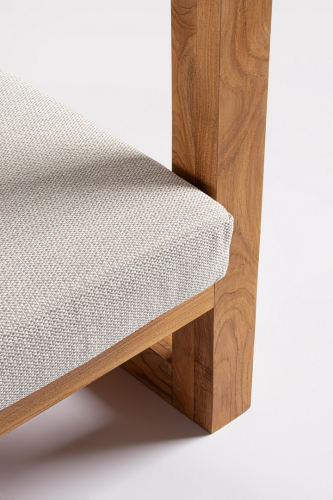 Рекомендуется избегать прямого солнечного света и воздействия погодных условий. Характерной особенностью данного изделия является наличие деревянных брусков одинакового типа. Любые вмятины, трещины или дефекты, которые также могут появиться со временем, являются особенностью этого материала и делают каждое изделие уникальным и оригинальным. Тик богат маслом. Со временем эти масла естественным образом поднимаются на поверхность и могут оставлять пятна на подушках, находящихся в непосредственном контакте с деревом.