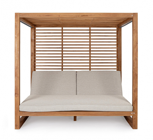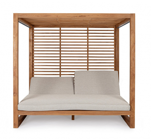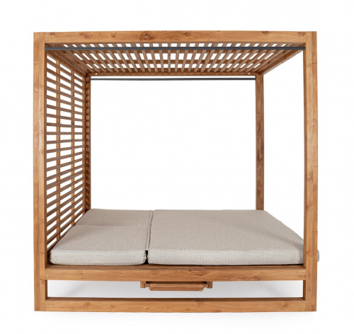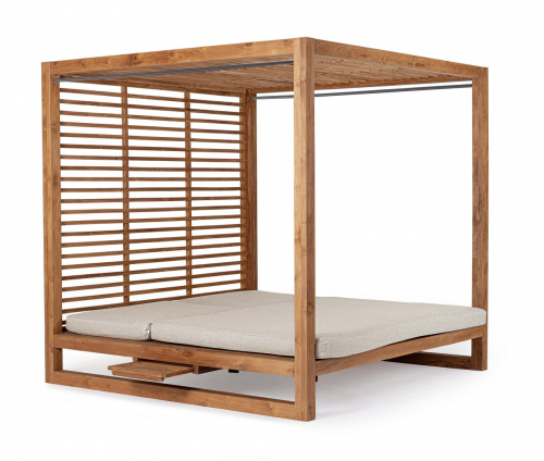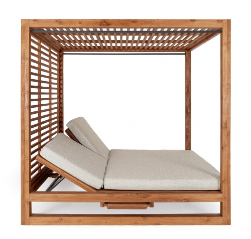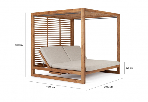 Honolulu - роскошный шатер с двухместным лежаком, который станет изысканным центральным элементом вашего сада или просторной террасы. Конструкция выполнена из 100% тикового дерева, сертифицированного FSC, с натуральной отделкой, которая подчеркивает природную красоту текстуры и гарантирует исключительную долговечность материала. Эргономичные спинки регулируются в 5 положениях, позволяя легко выбрать оптимальный угол наклона для комфортного чтения, дневного сна или принятия солнечных ванн в компании близких.