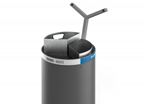 Цилиндрическая урна Carroarmato для мусора выполнена из толстого оцинкованного стального листа с центральной опорой с пластиной. Специальная конструкция, имеющая Y-образную форму с защелкивающимся замком, не позволит заполнить урну крупногабаритным мусором.