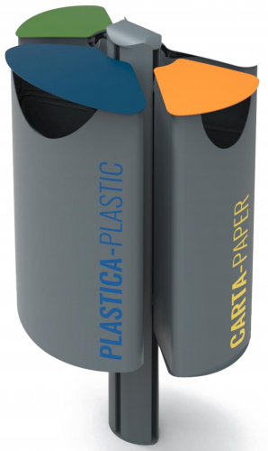 Урна Fiore состоит из 4 контейнеров объемом 35, 20, 35, 20 л, выполненных из стали с порошковым покрытием по шкале RAL. При окрашивании стали фабрика использует матовый эффект (с различными уровнями тиснения) в качестве стандарта. Удобная и функциональная модель идеально подходит для общественных мест, таких как городкие парки, скверы, пляжи, т.к. имеет несколько контейнеров с крышкой общим объемом 120 л.