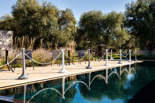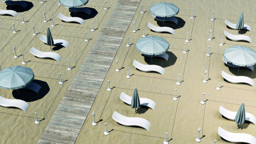 Решение, воссоздающее эксклюзивную обстановку с увеличенным пространством и сохранением интимности. Система, состоящая из балласта и веревки, позволяет вам индивидуально, быстро и гибко разделять пространства, создавая маршруты и подходы к нему, всегда гарантируя безопасность. Идеально подходит не только для пляжа, но и для летних террас ресторанов и баров, а также для бассейнов.
