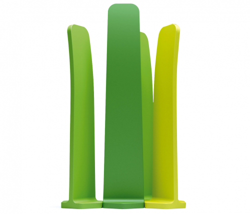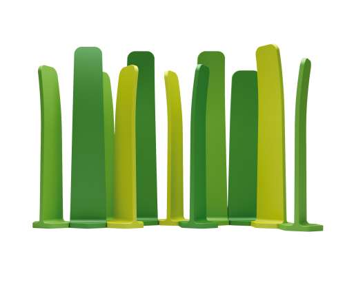 Gradient растет, как трава на лугах. Комбинируя модели вы можете создать эффектные перегородки, напоминающие травинки, движущиеся ветром. Модульная ширма доступна в двух вариантах высоты. Комбинация модулей с использованием сторон шестиугольного основания позволяет создавать стеновые перегородки для более или менее регулярного разделения пространства в зависимости от ваших потребностей. Два или всего несколько комбинированных элементов также могут создавать очень впечатляющие композиции.