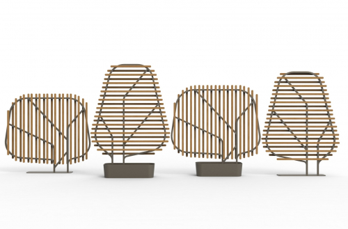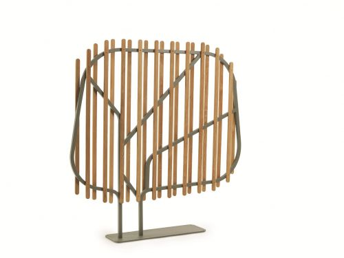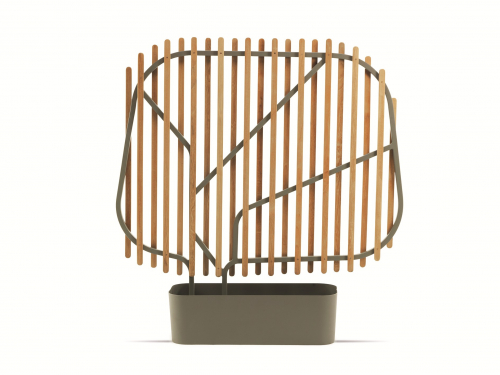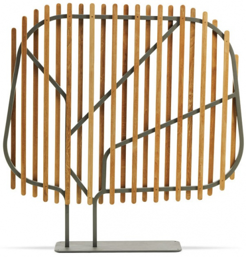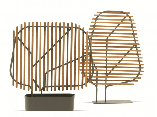 Clostra - это оригинальная коллекция ширм в виде стилизованных кустов, где переплетения и прожилки листьев создают идеальное средство для передачи конфиденциальности при оформлении пространства. Clostra - это то, что происходит, когда встречаются тик и алюминий: деревянные планки соединяются с металлом, чередуясь на двух разных уровнях, создавая интересную игру глубины.