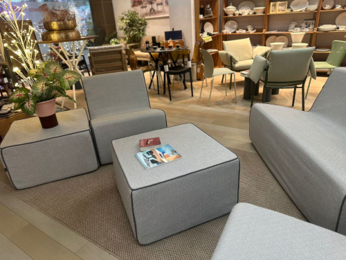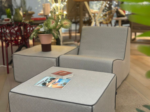 Комплект лаунж мебели Montenegro состоит из дивана, кресел и пуфа, который можно использовать как журнальный столик.