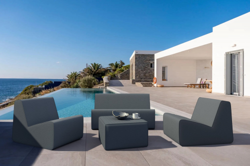 Комплект лаунж мебели Montenegro состоит из дивана, кресел и пуфа, который можно использовать как журнальный столик.