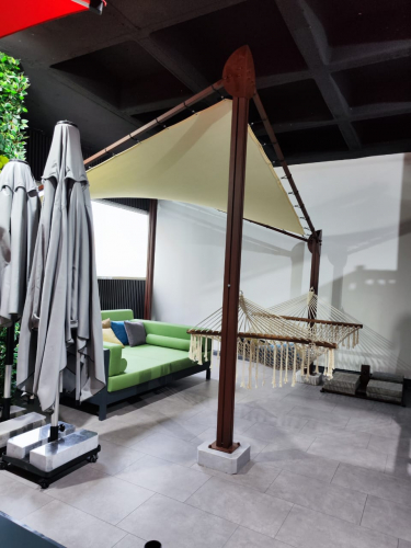 Навес Butterfly с богатым архитектурным дизайном можно использовать в таких местах, как сады, кафе, рестораны и террасы. Дополнительным преимуществом его является то, что он прост в установке, а также имеет возможность сборки. Это альтернатива моделям садовых зонтов.