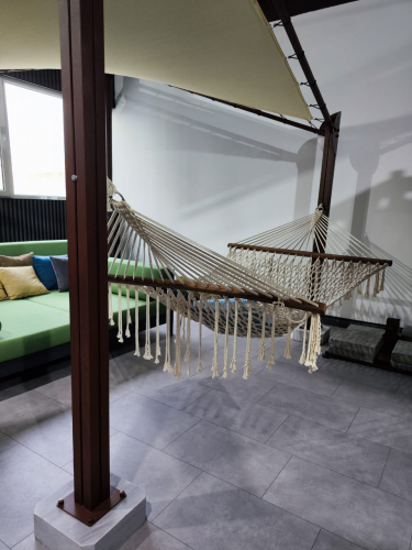 Соединительное оборудование стальное, а опоры корпуса усилены алюминием. Благодаря джутовому полиэстеру навес может использоваться даже в сильно ветреную погоду.