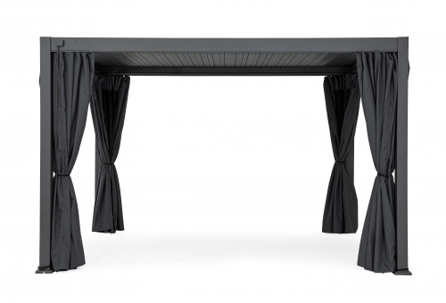 Стильная модель сочетается с любой мебелью - металлической, деревянной, плетеной или пластиковой - в любом случае, это будет уникальное место. Пергола создана из прочных материалов (алюминий, сталь) и имеет современные линии и формы. Функциональная и универсальная, она идеально подходит для оформления открытого элегантного пространства в лаунж зоне, на пляже, возле бассейна.