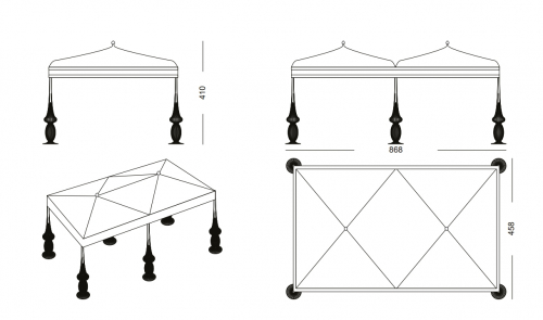 Дополнительно можно приобрести светильники по периметру шатра, поэтому все осветительные блоки, а также трансформаторы и силовой кабель полностью будут интегрированы в конструкцию.