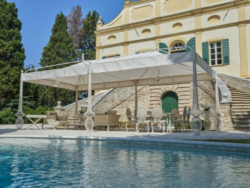 Шатер Sole представляет собой металлическую конструкцию ручной работы, обработанную эпоксидной краской с брезентовой крышей ручной работы. Конструкция шатра выдерживает любые атмосферные воздействия даже в морской среде. Посмотреть палитру материалов Samuele Mazza.