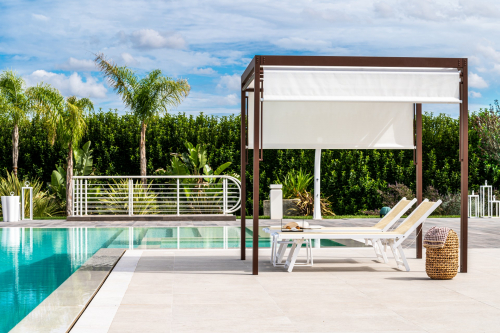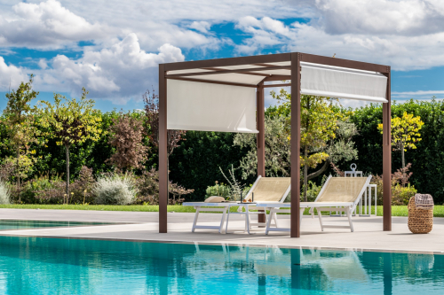 Calipso — это уличная беседка с чистыми, строгими линиями, которая чрезвычайно универсальна благодаря подвижной крыше, обеспечивающей более эффективную защиту от вредного солнечного излучения. Конструкция, полностью выполненная из алюминия, делает ее идеальной для использования во влажной среде. Дизайнерский предмет, идеально подходящий для жизни и обустройства современных пространств.